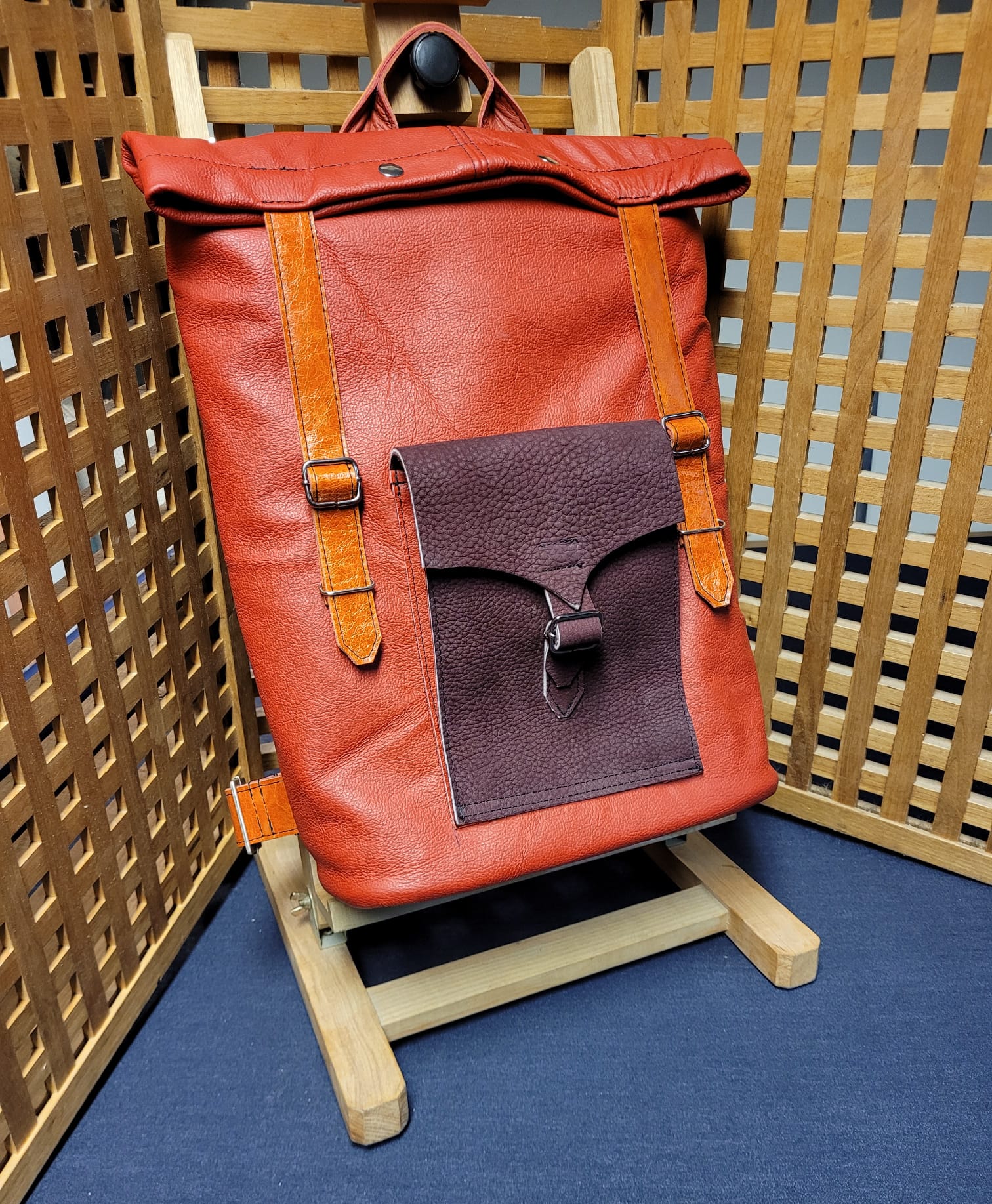 Hawthorn Roll Top Backpack - Orange & Burgundy